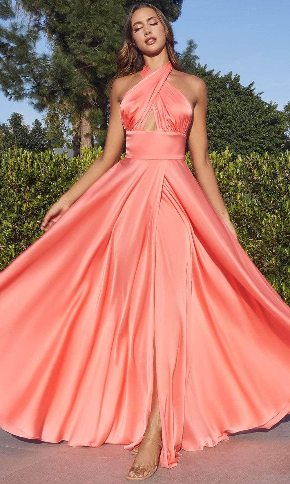 Release your inner fashionista with this Ladivine CD323 masterpiece. Designed to make heads turn. this sleeveless gown has a halter neckline and convertible straps that transform it into endless amazing styles. The wide waistband effortlessly emphasizes your curves. while the open back reveals just enough skin. The A-line silhouette of the wrap-style skirt is beautifully molded till it reaches the floor. opening a thigh-high slit to provide sultry leg exposure. Be in the spotlight wearing this Ladivine CD323 gown. Models are wearing Black. Emerald. Lt Coral. Red. and Sage colors.